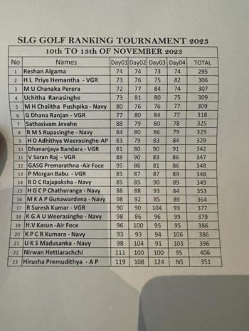 SRI LANKA GOLF NATIONAL RANKING TOURNAMENT
