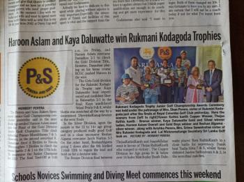 The Girls Gold division for the Rukmini Kodagoda Trophy will see Kaya Daluwatte meet the experienced and confident Sherin Balasuriya in the final. Kaya annihilated Yelani Peiris 9 & 8, whilst Sherin was battled all the way by a determined Dhevinka Kanag-Isvaran who played excellent Golf to hold Sherin in a well fought out clash, eventually going down 2 &1 to Sherin Balasuriya.