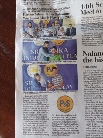 The Final to determine the Junior Champion for 2022 Tees-Off at 9.00 a.m. Friday morning, with Haroon Aslam favoured to follow up his victory in the recently concluded Regional Junior Championship played in Victoria Golf & Country Resort Course, Digana, Kandy. However, the Match-play format is a different proposition and Danushan playing on his home course RCGC could definitely push Haroon to the wire. Nonetheless the Final for the Rukmini Kodagoda Trophy, promises to be a thriller.